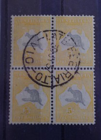Lot Description:Block of 4 Australian five shilling roos stamps