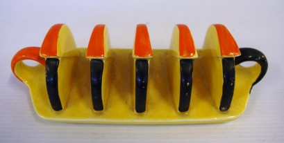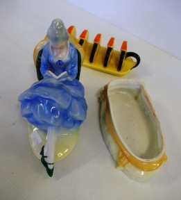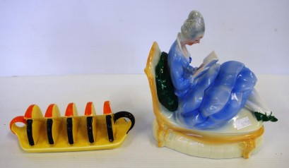 depicting seated lady reading a book, together with a art deco Carlton ware toast rack, hairline to the toast rack -