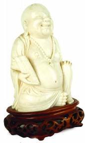 Lot Description:A good old large solid tusk ivory carving of a seated Buddha