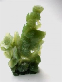 Lot Description:A Carved Green Stone Figure of a Boy Riding a Carp