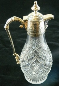 Lot Description:A Victorian crystal claret jug with silver plate mounts