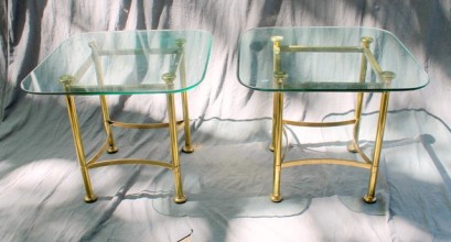 Lot Description:A matching pair of heavy brass based glass topped end tables