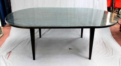 Lot Description:An ebonized contemporary glass topped dining table that seats eight