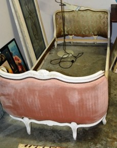 Lot #409 - Antique French day bed with white painted carved timber frame