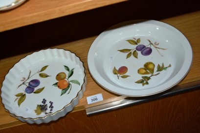 flan dish and a pie dish, both Evesham pattern, largest is 26.5cm D -