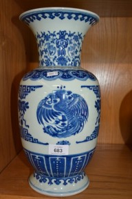 Lot #683 - Chinese blue and white glazed vase with phoenix detail