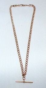 Lot Description:9ct solid open curb link Albert chain with t-bar