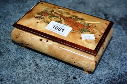 Lot #1081 - Small size timber and lacquerware musical jewellery box