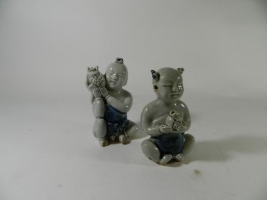 Lot Description:Two Chinese Porcelain Figures of a Seated Boy and Girl,