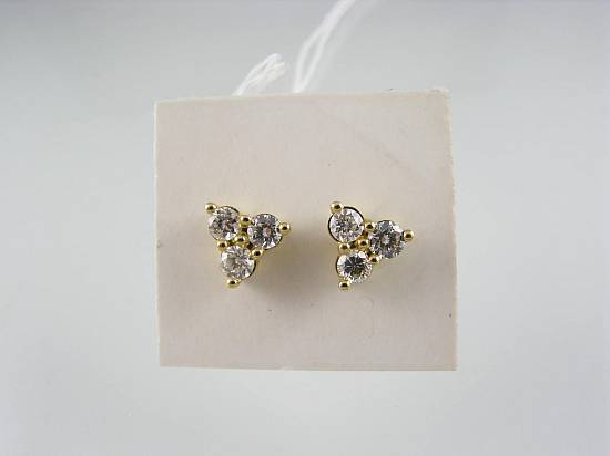 Lot #129 - A Pair Of Three-Stone Diamond Earrings