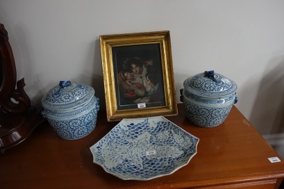 Lot Description:Pair of early Chinese blue and white lidded jars