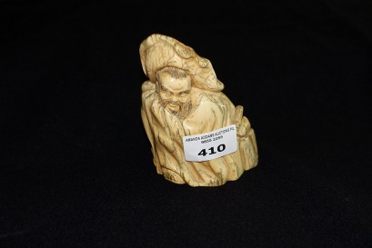 Lot #410 - Japanese ivory carved figure of a crouching man