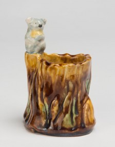 A glazed earthenware bough pot with applied koala figure