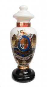 Lot Description:A large glass painted apothecary jar, circa 1880
