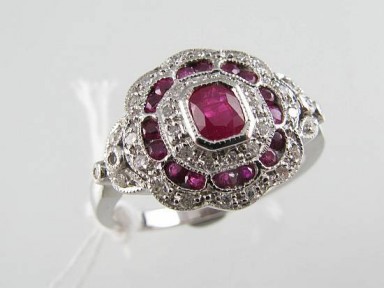 Lot Description:A Ruby And Diamond Cluster Ring