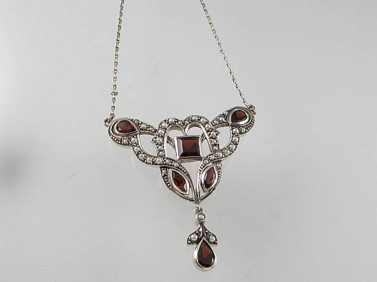Lot Description:An Edwardian Style Garnet And Seed Pearl Necklet