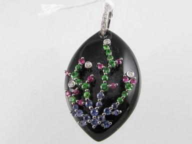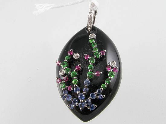 Lot #430 - A Diamond, Sapphire And Tsavorite Garnet Pendant