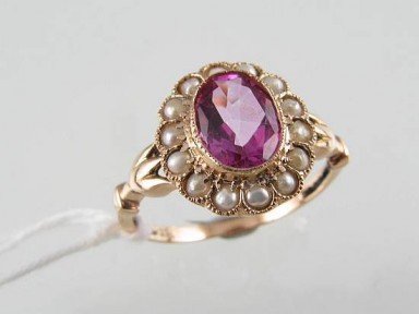 Lot Description:A Pink Topaz And Seed Pearl Cluster Ring