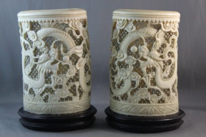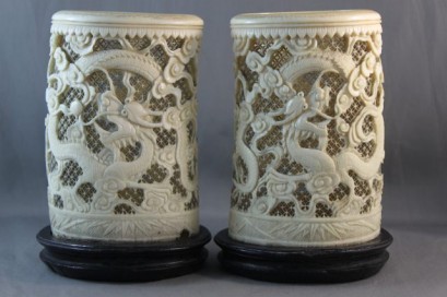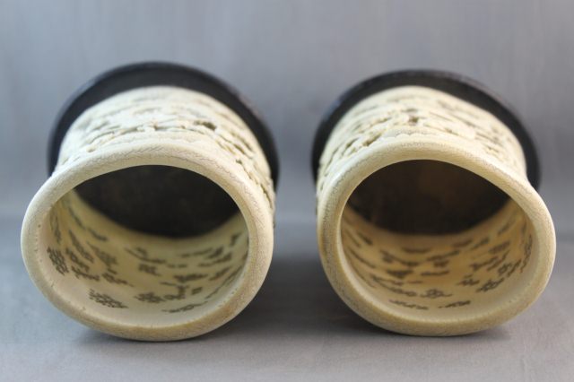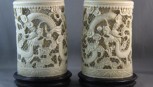Lot Description:Pair of Chinese Qing Dynasty Ivory Brush Pots