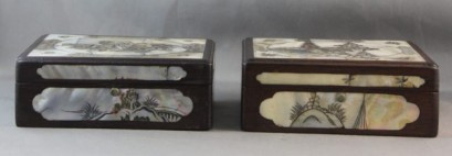 Lot #397 - Chinese Matched Pair of Stained Hardwood Boxes