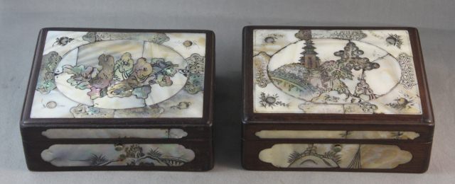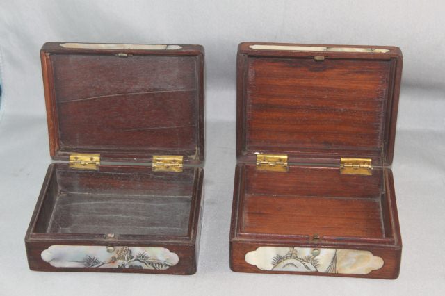 Lot Description:Chinese Matched Pair of Stained Hardwood Boxes