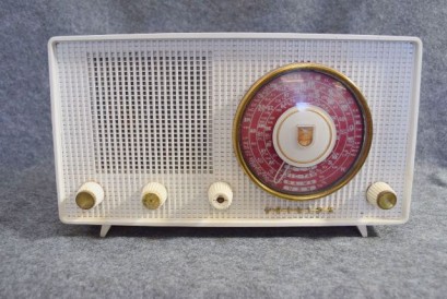 Lot Description:A Philips 172 white plastic valve radio 240v