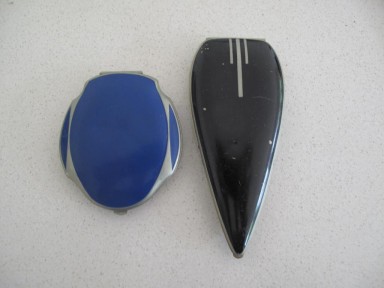 Lot Description:Elgin Art Deco blue compact with another black Art Deco compact by Elgin