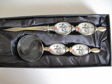 Lot Description:Boxed desk set comprising letter opener& magnifier