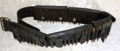 Black Leather, Fold Over Top Flaps, Brass Fittings, Filled With A Great Collection Of 50 Brass Deactivated Bullets, Faded Stamps To Buckle Flap, Dated “1889”