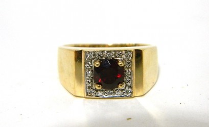 Lot Description:A 9ct Yellow Gold Synthetic Ruby and Diamond Ring