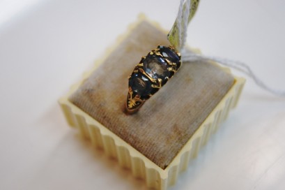 Lot Description:18ct yellow gold ring set with 3 oval aquamarines