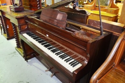 mahogany cased, made in England, note: some dead keys, in need of tune, generally in good order, 142cm wide -