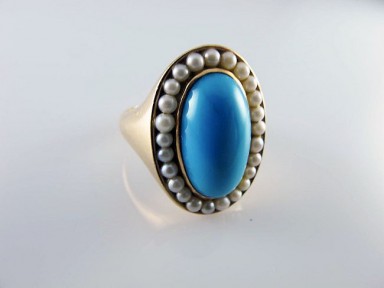 Lot Description:A Turquoise, Pearl and Gold Dress Ring