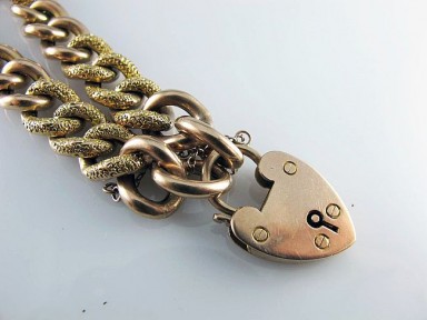 Lot #207 - An Old 9ct Rose Gold 'Night'And-Day' Curb-Link Bracelet