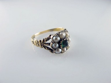 Lot Description:A Victorian Emerald and Pearl Cluster Ring