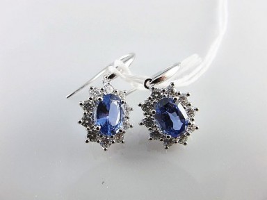 Lot #361 - A Pair of Sapphire and Diamond Drop Earrings