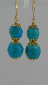 Lot Description:Yellow gold and natural turquoise drop earrings