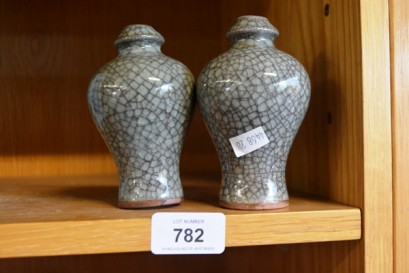 elegant Meiping form, with bud shaped mouth, crackle green glazed, 11cm H each -