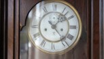 enamelled dial, missing second hand - otherwise complete, with pendulum, pair of brass weights, walnut cased, 116cm H -