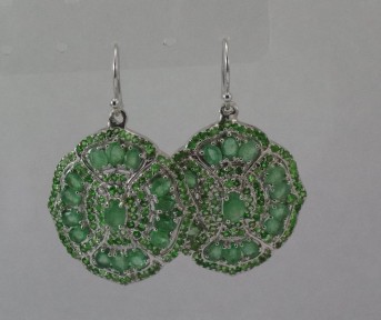 Lot Description:Pair of silver, emerald & green garnet earrings