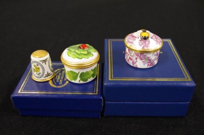 with lady bird & bee decoration, 3cm diameter approx. together with a Halcyon days boxed thimble -