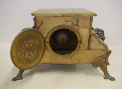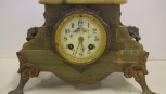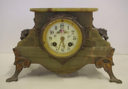 with 8 day striking movement (bell), in green onyx and ormolu , 29.5cm wide,missing figural top for case -