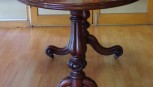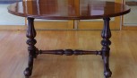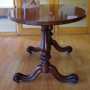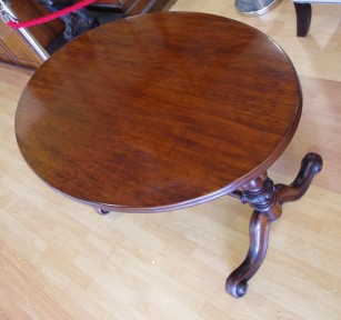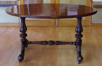 with oval top134cm x 90cm on turned reeded ends and scroll carved legs, united by a turned stretcher, 73cm high -