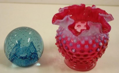 together with a Victorian cranberry glass vase