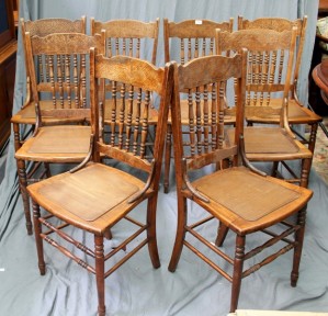 Lot #1002 - Eight matching spindle back chairs with impressed backs featuring Prince of Wales plume decoration