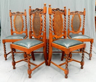 Lot Description:A set of six Jacobean dining chairs with rattan back
