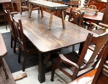 Lot Description:A heavy early 20th Century Arts & Crafts oak dining table