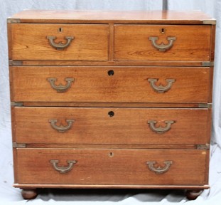 Lot Description:An early nineteenth century mahogany brass bound campaign chest of drawers