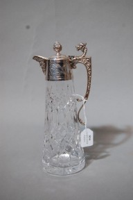 Lot #1014 - Silver plate mounted cut crystal claret jug