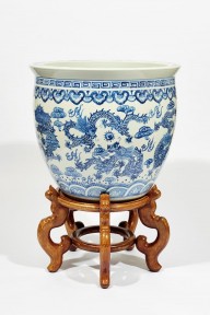 Lot Description:Pair of Chinese Blue and White Fish Bowls